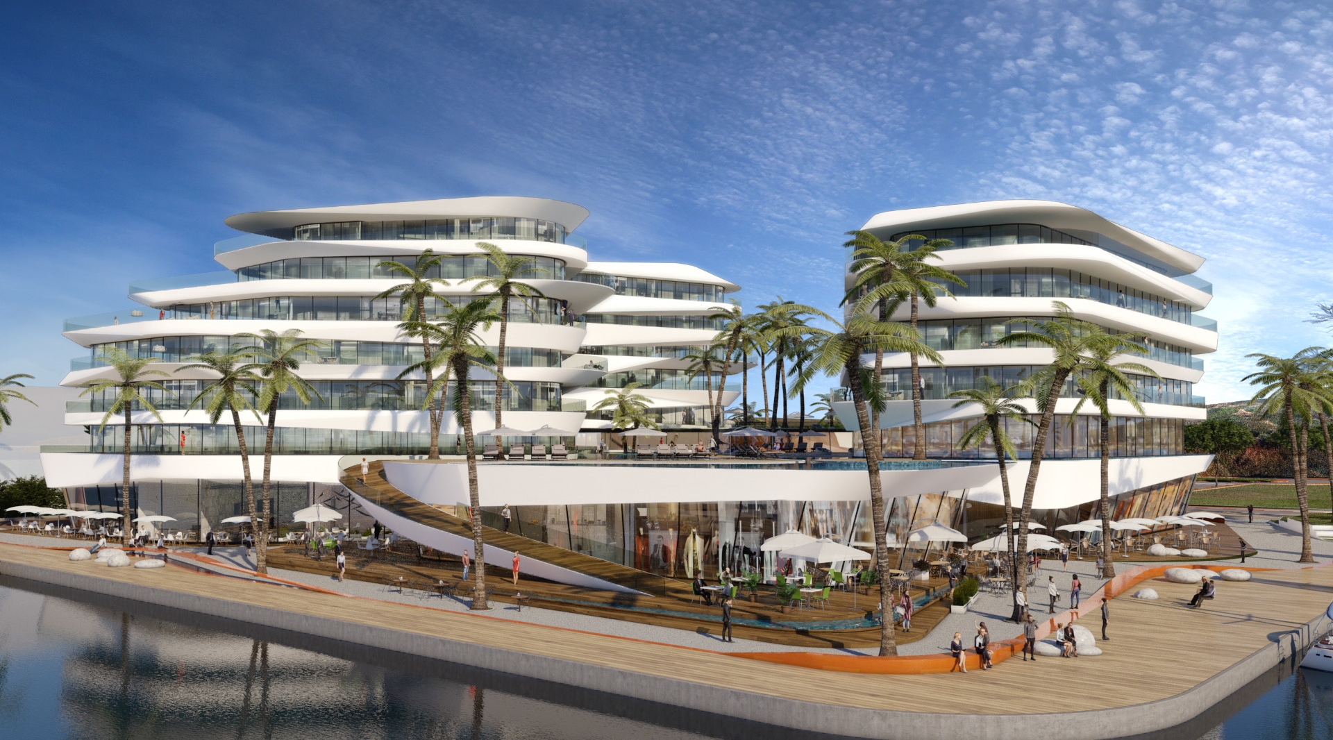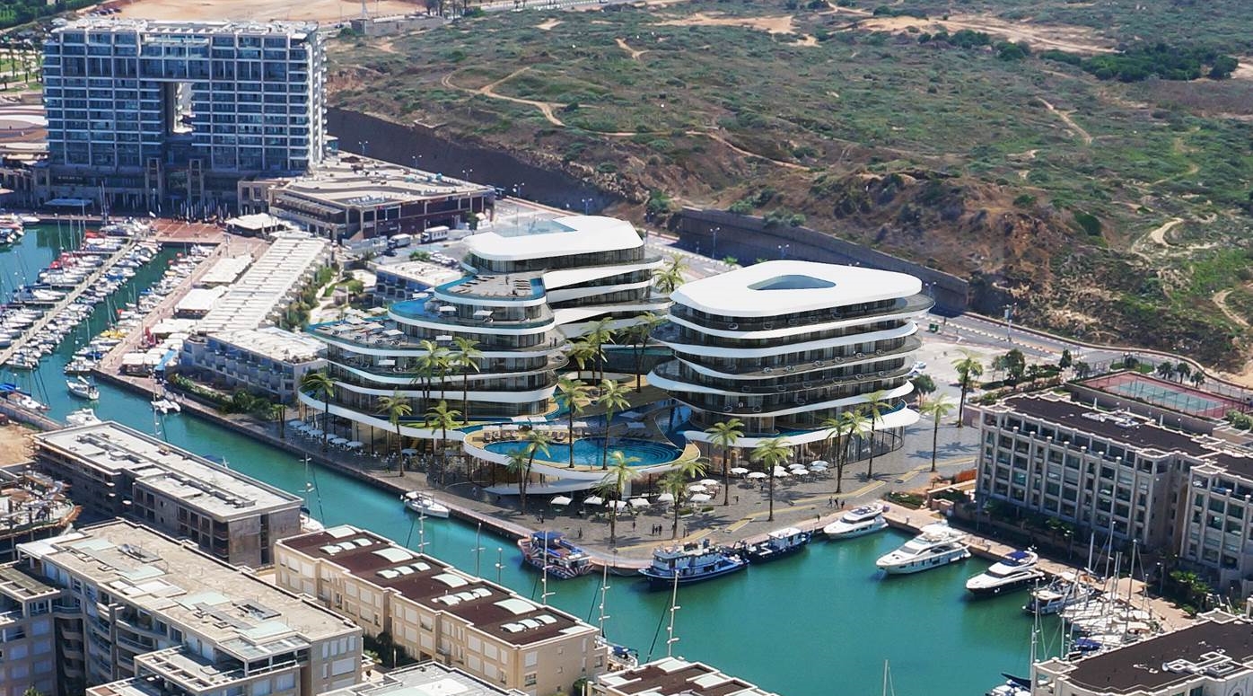 yacht bay in the resort beachfront of Herzliya, Israel. This area of Herzliya